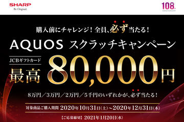 「AQUOS 20周年キャンペーン」。最大75,000円のギフト券