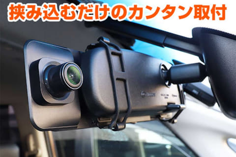 幅広い車種に装着できるバンド装着式で、純正ミラーに付属の固定用バンドで留めるだけで装着可能。レンズ部は左右にスライドできるので、純正ミラーのサイズを気にせずに設置できる。