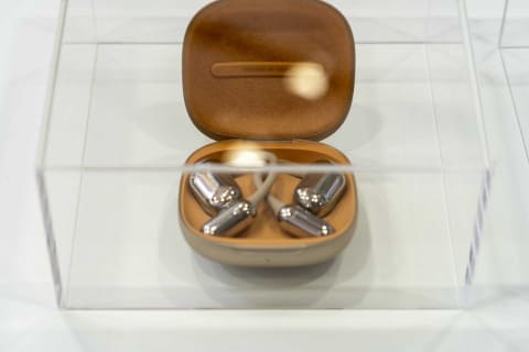 イヤーフックは柔らかい液体シリコンで覆い、0.6mmのフレキシブルメモリチタンワイヤーを内蔵。三点支持設計により圧力を分散し、長時間でも快適に装着できるのが特徴だという。ケースはナノテクビーガンレザーと合成スエードを組み合わせ、高級感のある仕上がりとなっている。
