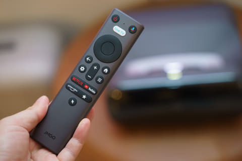 自動台形補正、オートフォーカス、自動スクリーンフィット、デジタルズームも搭載。調整はすべて自動で行なってくれる。壁が平坦でない場合は、JMGOのアプリと連携させて、投写映像を撮影。それを解析し、平坦な画面に補正する機能も備えている。ゲーム用の低遅延モードも搭載。