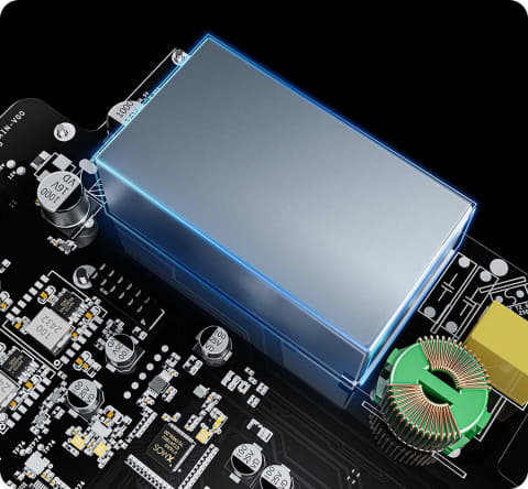 最大18個の低ノイズLDOと5個のDC-DCコンバータを備えたマルチレール電源を採用したほか、回路には厳選されたシルクフィルム素材で作られたELNA RA3シリーズオーディオコンデンサ、オーディオ専用タンタル電解コンデンサなども採用している。