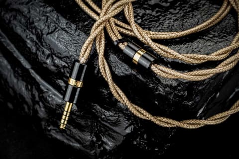さらにハードウェアとしては、6061-T6アルミニウムをCNC加工したものを採用。ブラッシュ仕上げと黒色アルマイト処理が施されており、ケーブルのY字分岐部とプラグ部には24K金リングも刻印した、被膜は医療用グレードPVC。
