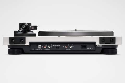 MM型カートリッジ「ortofon 2M Red」が付属し、フォノイコライザーも内蔵。フォノイコライザーを搭載していないアンプやアクティブスピーカーへ直接接続できる。ライン出力だけでなく、Phono出力も搭載する。