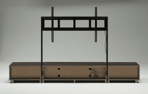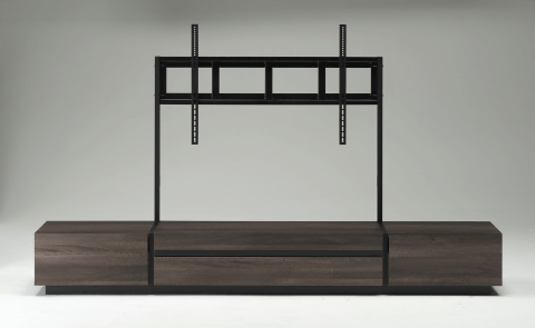 金具追加で“壁寄せ”もできる大型テレビ向けローボード。85~110型対応