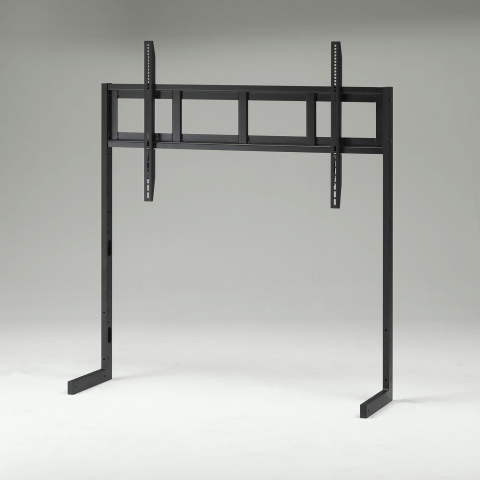 従来の中央支柱型と比べてテレビ画面の端が前後に揺れにくく、大型テレビでも安定した視聴環境を実現。85型までの「SP-WFL1960-DB」、110型までの「SP-WFL2410-DB」のどちらにも組み合わせることができる。スチール製で、VESA横幅200〜600mmのマウントに対応する。
