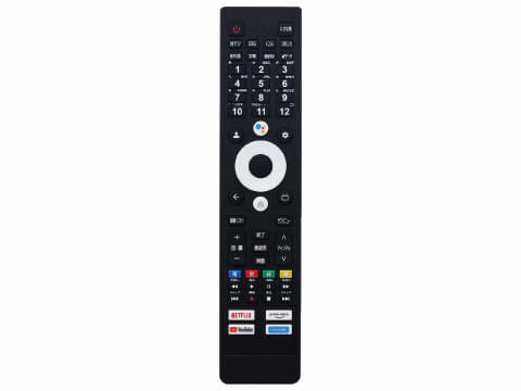 付属リモコンにはNetflixやYouTubeへのダイレクトボタンを備え、チャンネルを切り替えるように視聴できる。Google Assistant機能を備え、リモコンから音声操作で見たいコンテンツを探したり、テレビを操作したりできる。
