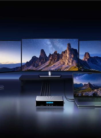 映像出力では、「DL7400ディスプレイチップ」をアンカーで初搭載し、より安定した8K出力を実現。MacBookやWindowsノートPCで、最大8Kで1台、最大4Kで2台の計3台への同時出力が可能。