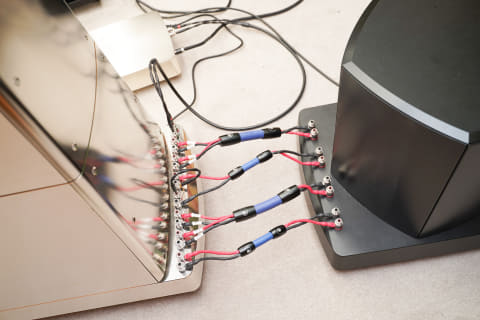 クロスオーバー・ネットワークは別筐体。高度な誘電特性と内部共振減衰を備えた特注の多層PCB基板上に構築。各クロスオーバー回路は、超厚高純度銅板を自社工場で精密加工し、シミュレーションにより最適化された配線パターンで干渉と歪みを排除。厳選された特殊ポリマー素材で一体成型された優雅な筐体に収めて、磁界干渉を遮断している。