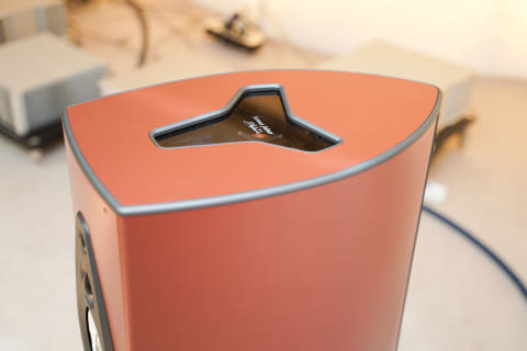 各ドライバーは広範な周波数帯域において隣接ドライバーと厳密に位相調整され、音の明瞭さ、リアルな音像定位、柔軟なリスニングエリアを実現。仮想同軸的なスピーカーだが、中央のツイーターの周囲が、瞳のような横長のホーン形状になっており、横方向の指向性を広げる工夫だという。
