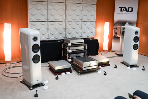 テクニカル オーディオ デバイセズ ラボラトリーズのブースでは、12月下旬に発売する、Evolutionシリーズのフロア型スピーカー「TAD-E1TX」の後継機種「TAD-E1AX」が注目を集めている。1台の価格は、ブラックモデルの価格は1,650,000円。グロッシーホワイトは1,705,000円。なお、グロッシーホワイト2026年1月中旬発売。