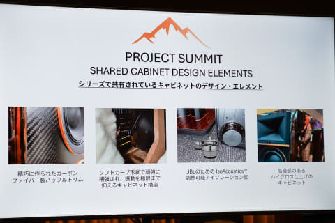 ハーマン ラグジュアリーオーディオ部門の副社長でゼネラルマネジャーのDAVE TOVISSI氏は、ジェームズ・B・ランシングが、ハートフィールド氏と共に1950年代に作り上げた3ウェイオールホーンのスピーカー「ハートフィールド」や、立体的なステレオ再生を追求して生まれた「パラゴン」、山中敬三氏がコンサルタントとして助言を行ない完成した「EVEREST」など、これまでの名機を振り返りながら、「最新のSummitシリーズも、JBLの総力を結集して開発した新たなプロジェクトシリーズ」と紹介した。