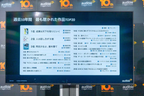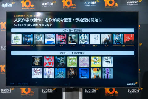 10月21日には都内で10周年記念プレス発表会が行なわれ、Audibleの逢阪志摩カントリーマネージャーは「(サービス開始)当初はビジネス・自己啓発の作品が聴かれる傾向でしたが、2022年に聴き放題を導入して以来、ジャンルの広がりが加速し、実用書からエンタメまで、幅広いラインナップでみなさまの生活に寄り添うサービスとして発展してきた」と振り返った。