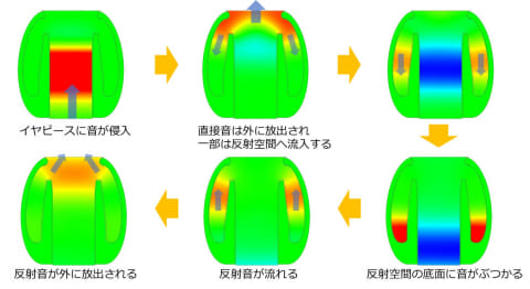 iReep01ではイヤーピース内部で効果的な反射音を作り、ドライバーから放出されて直接耳に入る音と、反射して耳に到達する音が重畳。聴感上の遅延を感じて広いサウンドステージと臨場感を感じられるという。