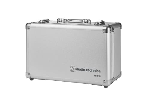 同日発売のハードケース・AT-HPC3は、複数の高級ヘッドフォンを使い分けるオーディオファンのために誕生したというアイテム。ヘッドフォンをスマートに収納できるスクエアデザインで、底面にはフット構造も採用。