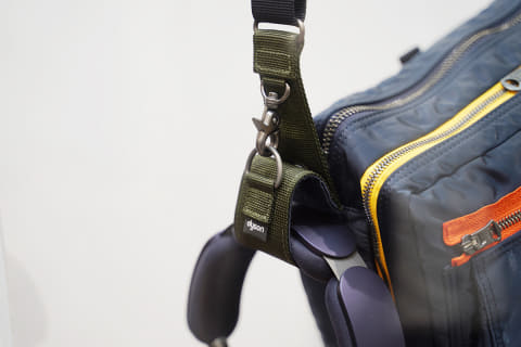 ショルダーカバンも、ヘッドフォンの色味と合わせたカラーになっているほか、端に、ヘッドフォンのヘッドバンド部分を固定するためのバンドを配置。ヘッドフォンを運搬しやすい仕様になっている。