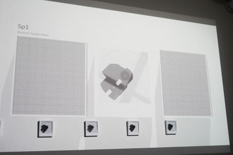試作機も無い段階だが、「Cp1とマッチするBluetoothスピーカーが欲しい」との声を受けて、壁掛けも可能な薄型Bluetoothスピーカー「Sp1」を検討しているとのこと。このSp1は、1台でも使用できるが、2台使ってステレオ再生することも可能。