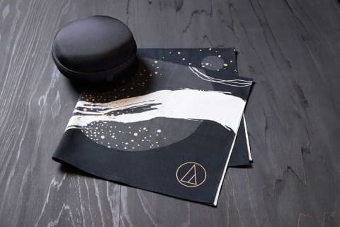 アクセサリーキットの同梱品は、専用ヘッドフォンケースと、京都の染色工場「馬場染工場」とのコラボによる特製の風呂敷。馬場染工場は110年以上の歴史を持つ京都の染色工場で、特製風呂敷はATH-M50x ENSOにあわせた手染めによる模様とデザインが採用された唯一無二の存在となる。