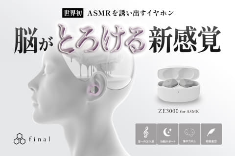 finalは、ASMR特化ワイヤレスイヤフォン「ZE3000 for ASMR」を開発。クラウドファンディングサイト「GREEN FUNDING」にて11月4日より先行販売する。クラウドファンディング開始に先駆け、ティザーページが公開された。