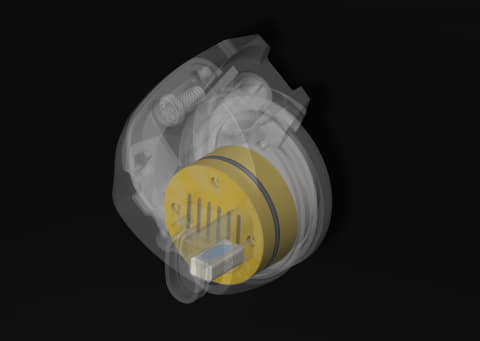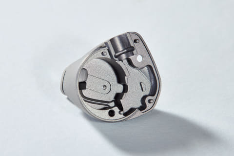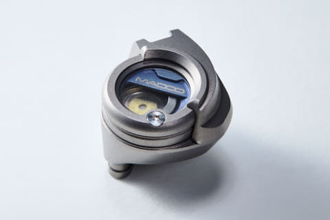 スイス製や日本製の高級時計、ドイツ製自動車などの切削工具を手掛けた金属加工を熟知したエンジニアがハウジングの設計を担当。強力かつ高精度な加工の出来る多軸 CNC 加工機によりチタンブロックから削り出してハウジングの製造を行なっている。