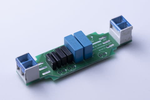 Nve-06は、こうした高周波ノイズ対策に特化。高周波特性に優れたフィルムコンデンサを容量別に配列し、高周波インピーダンスを低減。インバータやスイッチング電源、内部クロックなどから発生されるノイズを抑制、減衰する。