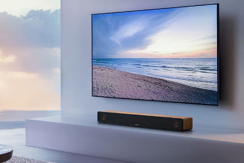 Dolby Atmosにより、包み込まれるようなリアルな立体サウンドを再現。テレビ番組などの2ch音源も3Dサウンドにアップミックスも可能で、幅広い視聴ソースにおいて、臨場感あふれる音響空間が楽しめる。