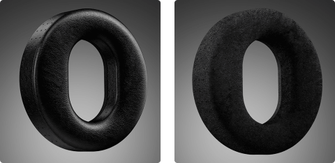 滑らかなラムスキンと柔軟なスエードと、2種類のイヤーパッドが付属、装着感や音質から選択できる。