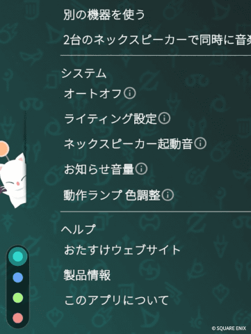 専用アプリもコラボ仕様となっており、アプリ内には動くモーグリが登場。テーマカラーも本体LED同様にロールごとに切り替えが可能。プレイヤーのこだわりを反映できる。サウンドモードやイコライザー設定も「SC-GNW10S」と同じくカスタマイズ可能。