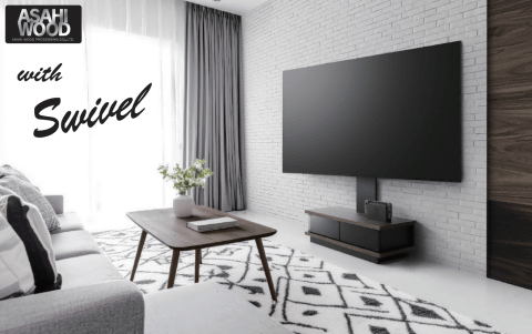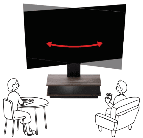 壁寄せタイプで省スペース設置が可能なテレビスタンドに、視聴位置に合わせてテレビの位置を自在に調整できるスイーベル機能(首振り機能)を搭載。