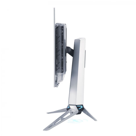 最新の有機ELパネルと、最大720Hzものハイフレームレートに対応したモニター。半透明とシルバー仕上げの筐体も特徴。