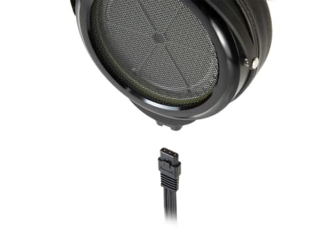 ヘッドパッドには幅広い頭部形状にフィットする、10段階のクリック式機構を採用した。イヤーパッドは肌に触れる部分は羊革、取り付け部分には人工皮革を採用。付属ケーブルは長さ2.5m、平行6芯の特製幅広低容量OFCケーブル。