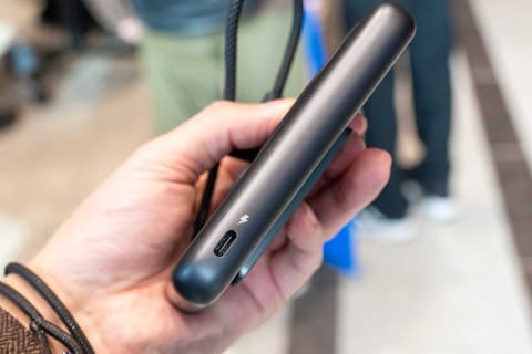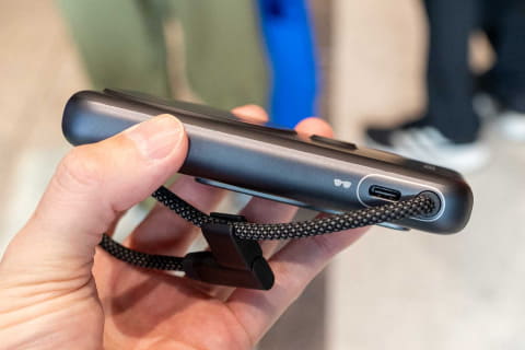 本体備え付けのUSB-Cケーブルを接続することでデバイスを充電可能。ケーブルは最大60W出力に対応している。本体側面にはARグラス接続用のUSB-C端子、給電用USB-C端子も備える。