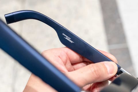 自動調光機能を備えたほか、ツル部分にはSOUND BY BOSEのスピーカーを搭載。「クリアで没入感ある空間オーディオ」が楽しめる。デバイスとは付属USB-Cケーブルによる有線接続で、ツルの先端にUSB-C端子を備える。