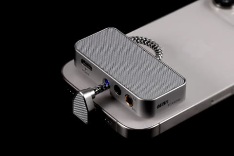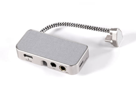 従来の“ぶら下がるドングル”デザインと異なり、筐体背面にケーブル溝を設けることで、配線がスッキリ収まるようにデザインされた、新しいポータブルDACアンプ。