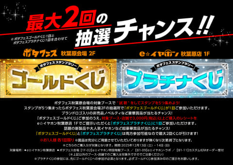 e☆イヤホンは、12月13日、14日の2日間、”ポータブルオーディオ”の試聴・体験イベント「ポタフェス 2025 冬 秋葉原」を実施する。会場はベルサール秋葉原 B1F・1F・2F。入場料は無料で、事前登録なしのフリー入退場となっている。