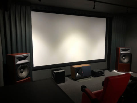 ホームシアターの没入感を最も味わえる「専用室シアター」コーナーは、暗室によりプロジェクターの性能を最大限引き出すと同時に、150インチの超大型スクリーンや17本ものスピーカーを設置。映画館さながらの雰囲気で映像作品が楽しめる、極上のホームシアター空間を目指したという。