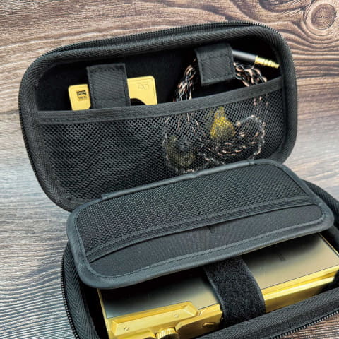 上面にはゆとりあるポケットを備え、DAC/AMPやケーブル・イヤーピースなどを収納できる。ワイドポケット・ミニポケットを各面に備えたセンターパッドも用意されており、ケーブル類など使用頻度の高いアイテムも、スピーディに取り出せる位置に収納可能。