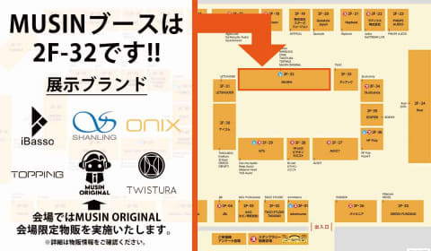 MUSINブースでは、同社が取り扱うSHANLING、iBasso Audio、iBasso Jr.、ONIX、TWISTURA、TOPPING、MUSIN ORIGINALといった各ブランドの最新オーディオ製品を展示。会場限定物販や各種キャンペーンも予定している。