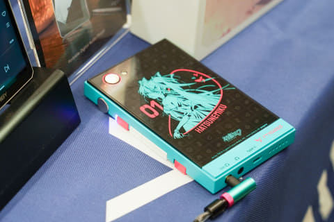 初音ミクとのコラボレーションを記念した、期間限定生産のエントリーDAP。筐体デザインは、初音ミクをテーマにした限定カラー仕上げ。ミクを象徴するペールブルーグリーンを基調に、側面の物理ボタンに鮮やかなピンクレッドを組み合わせた。