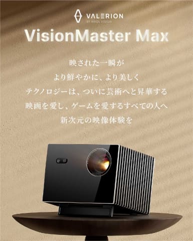 Valerion Japanは、独自システムで“漆黒”を映し出すというRGBトリプルレーザーの4Kプロジェクター「Valerion VisionMaster Max」の先行販売を、12月16日よりクラウドファンディングサイトのMakuakeで開始した。一般販売予定価格は792,646円だが、150台限定で41% OFFの450,000円で購入できる超早割などのプランを用意する。製品は2026年1月末までに配送予定。プロジェクト期間は2026年2月27日22時まで。