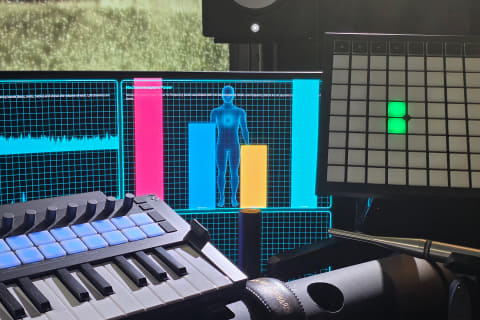 まず最初に、私たちがこれから触れる機会があるかもしれない “体験” の技術から。今ツアーでは「Sensory Re:Fusion for LBE」「エンタテインメント向け群ロボット」「Feel So Music」の3つの展示を体験しました。