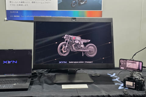 会場では、モバイルモーションキャプチャー「mocopi」と連携して、より手軽なモーション制作を実現する「XYN Motion Studio」、ミラーレス一眼カメラで撮影した画像と独自アルゴリズムを用いて、現実の物体や空間から高品質でフォトリアルな3DCGアセットを創り出す「XYN 空間キャプチャーソリューション」などの技術展示が行なわれました。