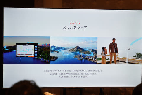 その上で、直感的な操縦ができるコントローラーや、Visionゴーグルと組み合わせる事で、「単なる“飛ぶカメラ”ではなく、誰もが自然に空間を記録し、共有する時代を作りたい。普通の人のための、最適なドローンとして開発した。一般ユーザーは今まで撮影できなかった映像が撮れる、プロはアングルや画角の制約から解放され、撮影や編集の幅が広がる製品になる」とアピールした。