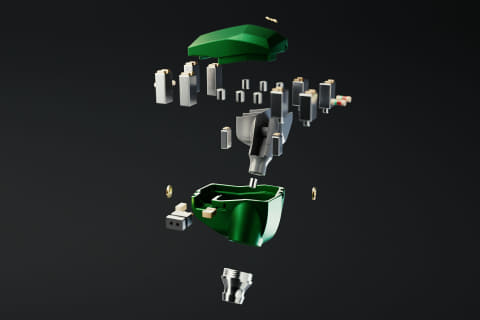 独自設計のNoise-Elimination Mid-Circuit(NEMC)を搭載した。4基のミッドレンジ用BAを新しい回路構成でハウジングおよび配線することで、BAドライバー特有の微細なリンギングやノイズ成分を効果的に抑制。特に、同一ドライバーを複数積層した際に生じやすい不要な共鳴や干渉を排除し、クリーンで輪郭の明瞭な中域再生を実現するという。