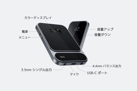 約96gの薄型・軽量なボディでありながら、ポータブルアンプとして十分な出力と制御力を確保。最大出力はバランス出力で600Ω時41.67mW(5.0Vrms)、アンバランス出力で300Ω時20.8mW(2.5Vrms)。イヤフォンからヘッドフォンまで、幅広い機器を安定してドライブする。