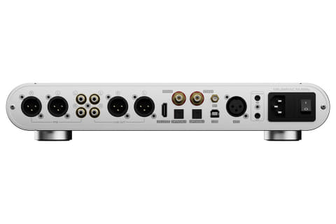 USB、Bluetooth、光デジタル×2、同軸デジタル×2、AES、IIS、計8系統のデジタル入力を搭載。出力系統は、6.35mmアンバランス、4ピンXLRバランス、4.4mmバランス、XLR/RCAラインアウト、XLR/RCAプリアウトを用意。これらの入出力系統は、本体設定から必要に応じてON/OFFのカスタマイズができる。