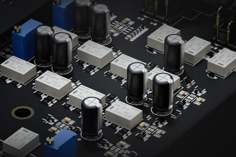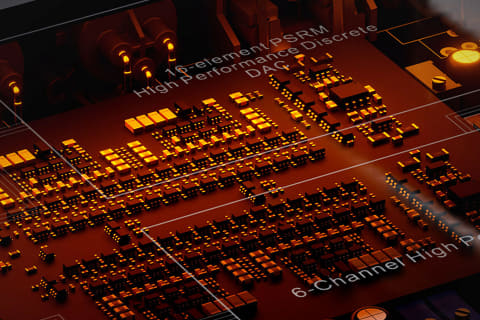 左右チャンネルに、16フェーズ構成の新開発「PSRMモジュール」を搭載。PSRMは、高速スイッチングロジックICと高精度電圧リファレンス回路から構成される1bitディスクリートDACアーキテクチャ。20種類を超える部品から厳選された構成により、限りなく高速なレスポンスと優れた信号の忠実性を両立し、電源システムへのノイズ干渉を最小限に抑えるという。