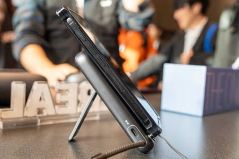 XREAL Neoは、スマートフォンの背面にマグネット固定できるバッテリー内蔵のアクセサリー。有線ケーブル一体型となっているほか、ARグラス接続用のUSB-C端子などを備え、スマートフォンを充電しながらARグラスを使用できる。Nintendo Switch/Switch 2のTVモードにも対応している。