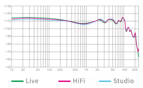 独自テクノロジーのシングルロッド連動フィルターを採用し、リスニング用の「Hifi」、スタジオモニター用の「Studio」、ライブモニター用の「Live」という各プロユースサウンド傾向を、1つのスイッチで切り替え可能にしつつ、音のバランス、低域の沈み込み、高域の伸び、音域の拡大などを改善した。