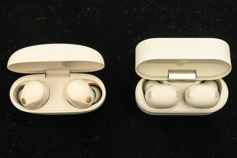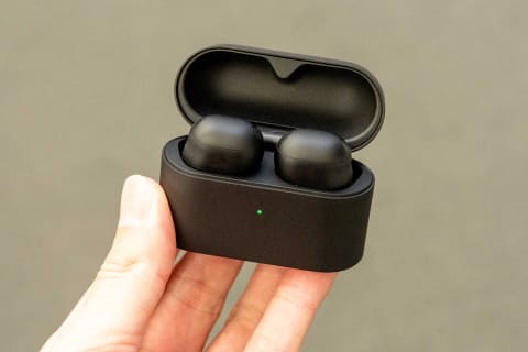 ケースは前モデルより直線の多いデザインに変更。フタのヒンジ部分にはWH-1000XM6と同様、金属部品を採用した。充電状態などを知らせるLEDは外観に溶け込むようなデザインとなっている。