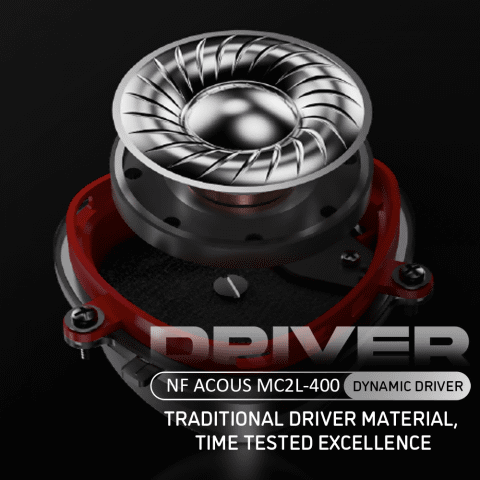 ドライバーは、1.5テスラを超える超高速磁束密度を生み出す2つの大型高性能ネオジム磁石を備えたデュアル磁気回路設計を採用した、40mmダイナミックドライバー(MC2L-400)を搭載。